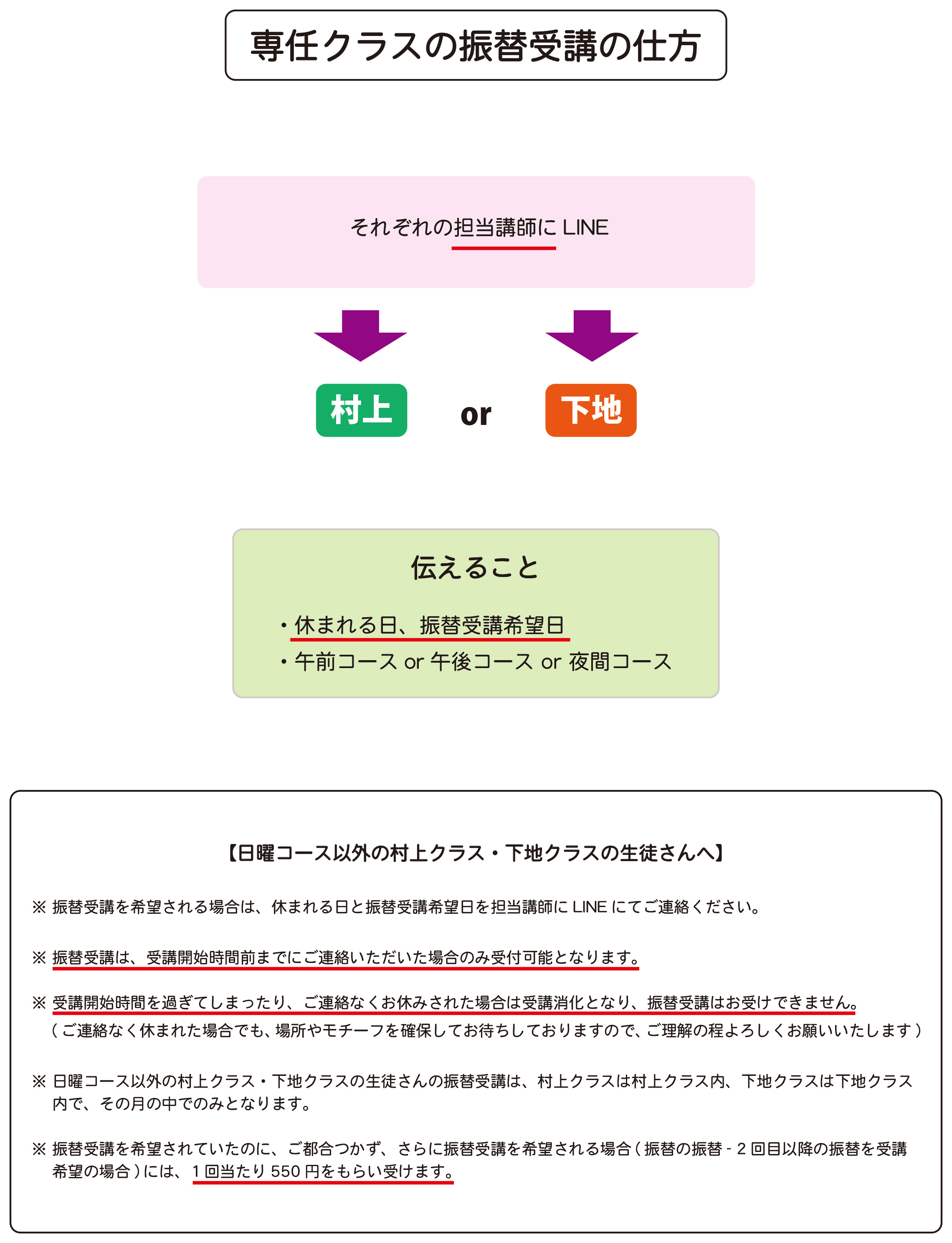 日曜コース・専任クラスの受講振替の仕方について